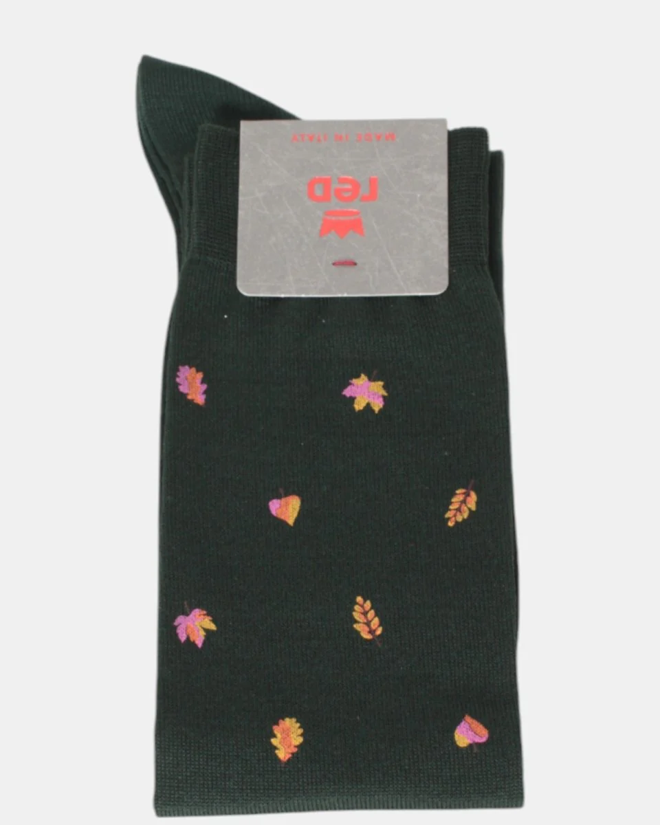 La calza lunga di Red fantasia a foglie liscia, monocolore è composta per il 80% da cotone, 18% poliamide e 2% elastan
