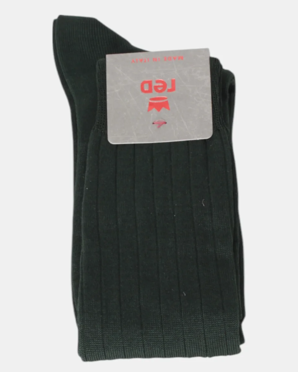 La calza lunga di Red a costa larga, monocolore è composta per il 90% da cotone, 9% poliamide e 1% elastan