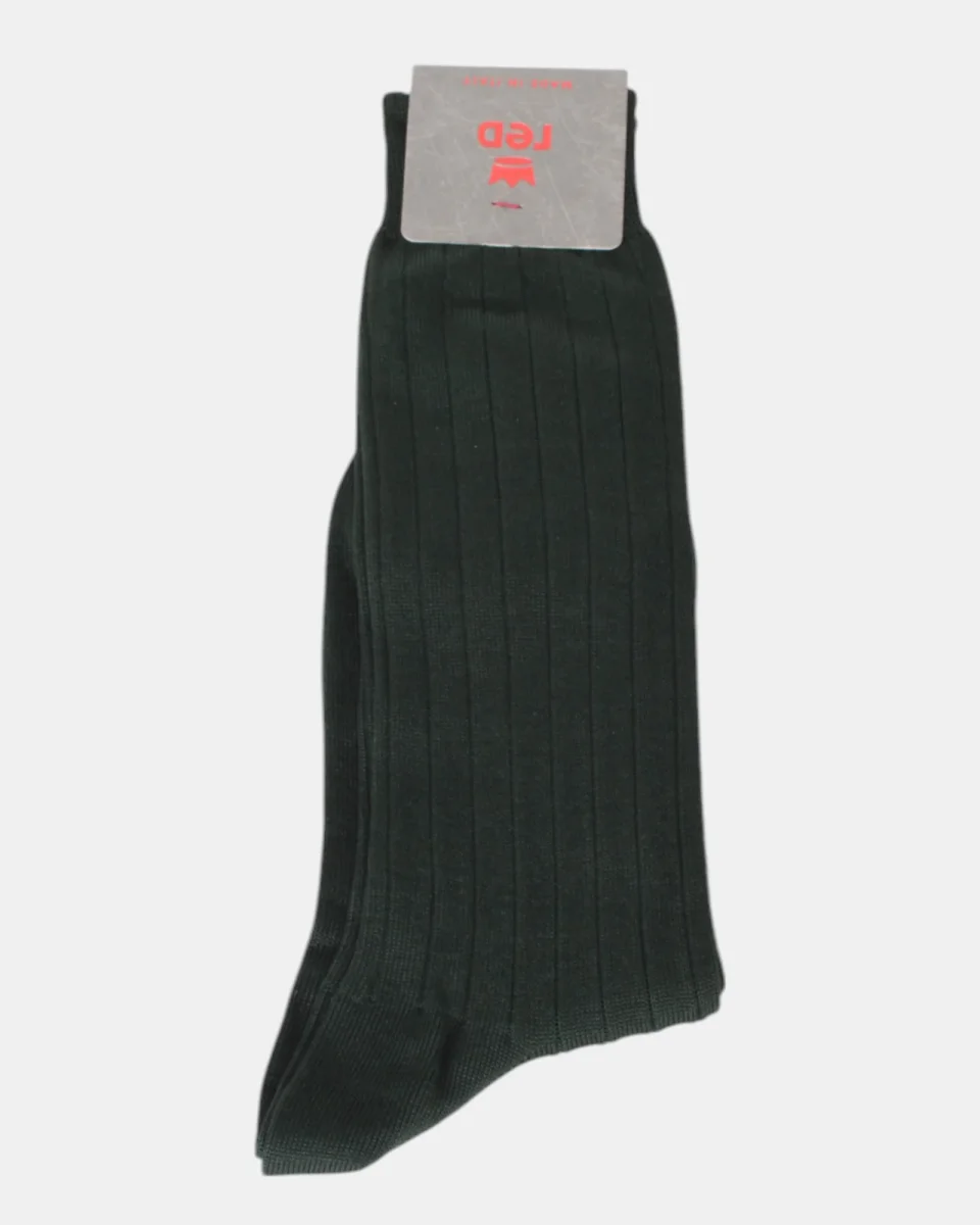 La calza corta di Red a costa larga, monocolore è composta per il 90% da cotone, 9% poliamide e 1% elastan