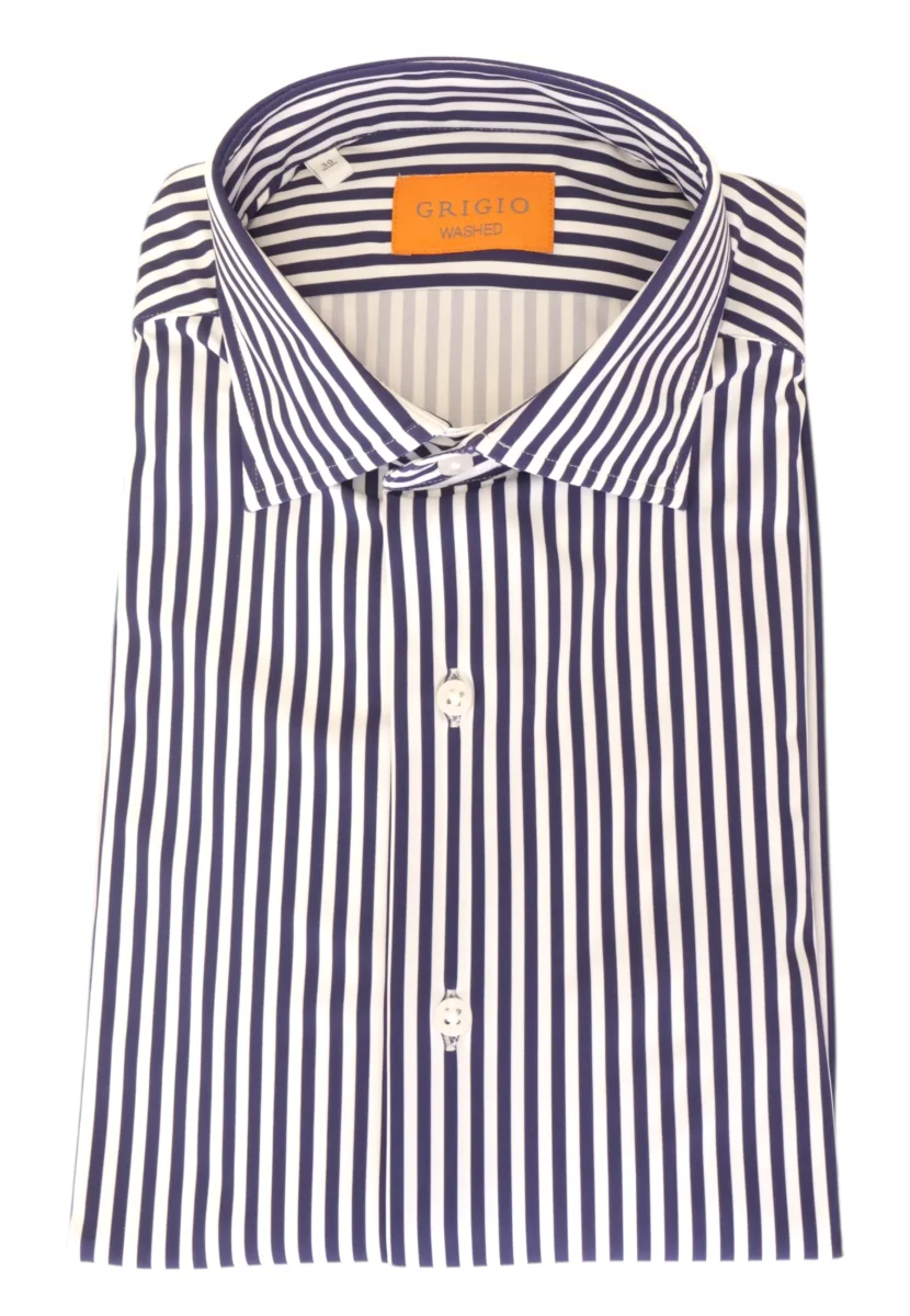 la camicia uomo regular special lavata firmata Grigio unisce stile contemporaneo e comfort quotidiano. realizzata in tessuto tecnico composto da 76% nylon e 24% spandex, garantisce leggerezza, elasticità e libertà di movimento durante tutta la giornata. il modello a manica lunga presenta una vestibilità regolare che valorizza la silhouette senza risultare aderente. il collo francese dona un tocco elegante e raffinato, mentre i bottoni in madreperla aggiungono un dettaglio ricercato che impreziosisce il design. perfetta per outfit casual eleganti o look più formali, questa camicia uomo grigio rappresenta una scelta versatile e moderna per il guardaroba maschile.