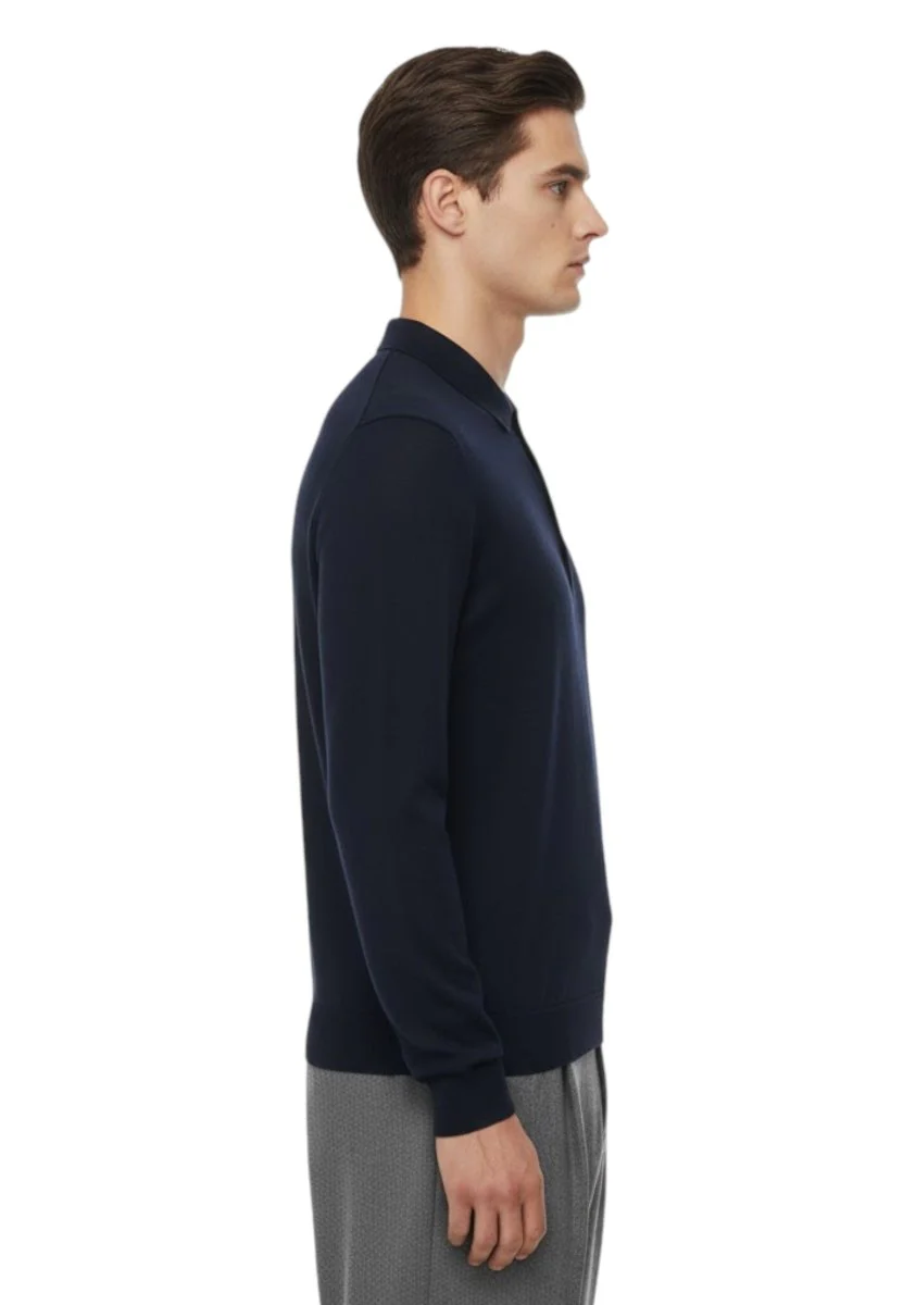 Collo a Polo: Design classico con collo a polo e chiusura con bottoni tono su tono, un dettaglio sobrio ma curato.
