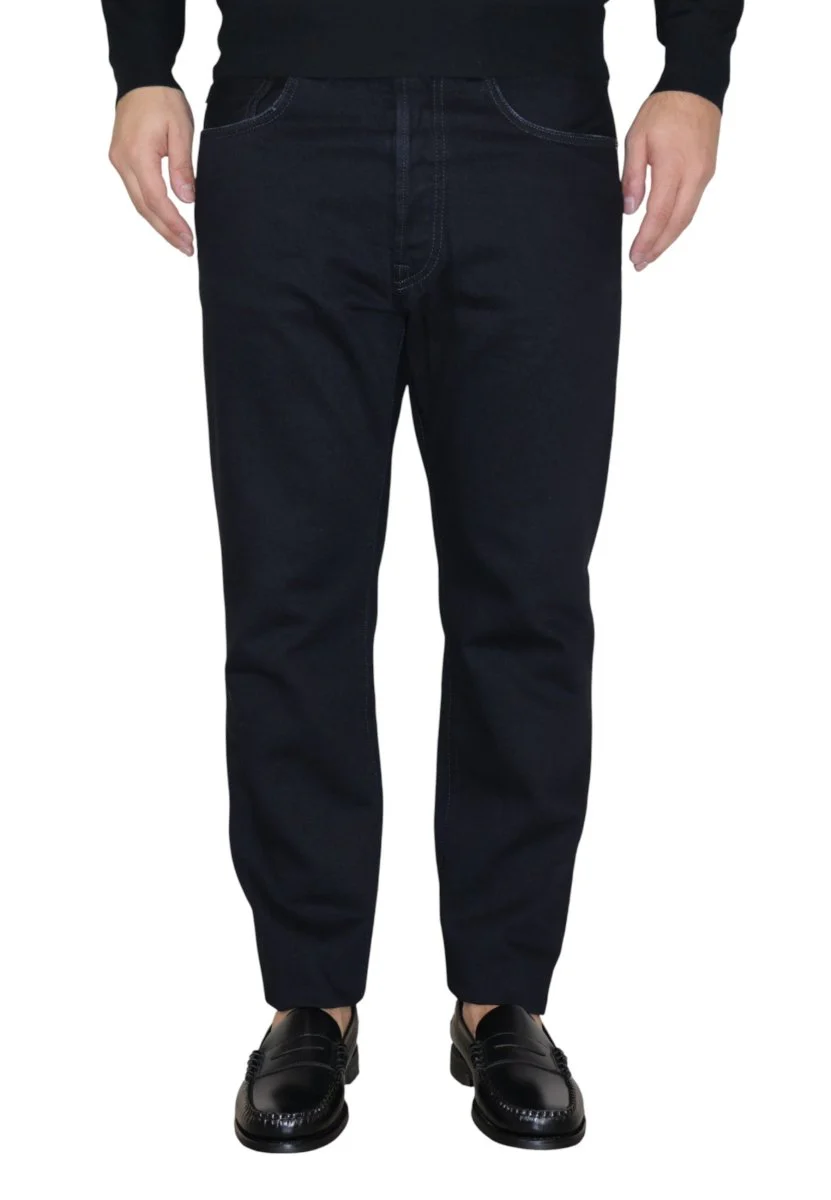 Realizzato in cotone puro, questo jeans garantisce traspirabilità e comfort, rendendolo ideale per essere indossato in ogni stagione. La vestibilità impeccabile offre un look raffinato, mentre il design classico e il colore sobrio lo rendono facilmente abbinabile a camicie e maglioni per un outfit casual ma curato.
