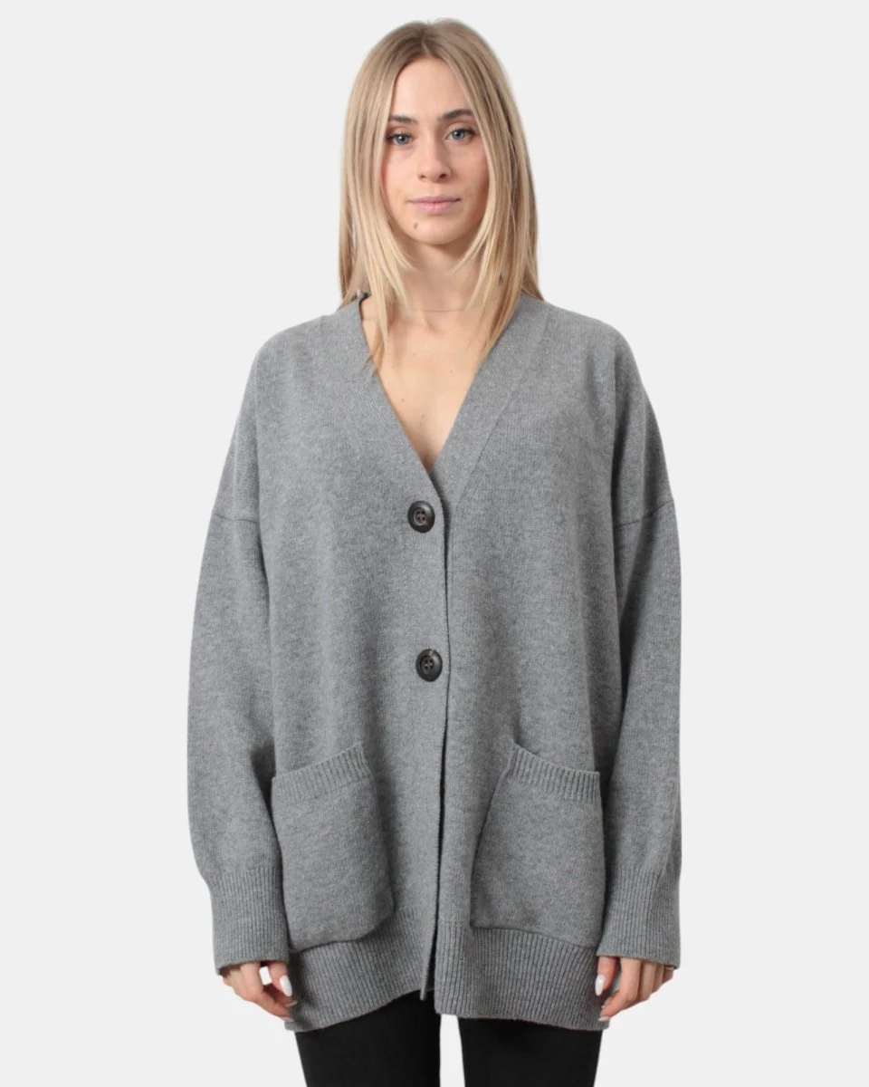 Il cardigan over di Roberto Collina presenta chiusura a quattro bottoni, due tasche a toppa, polsi e fondo a costine. Dalla mano calda e morbida dovuta alla sua composizione in 100% lana merino. Si consiglia lavaggio a mano. La modella è alta 1,67 m e indossa una M