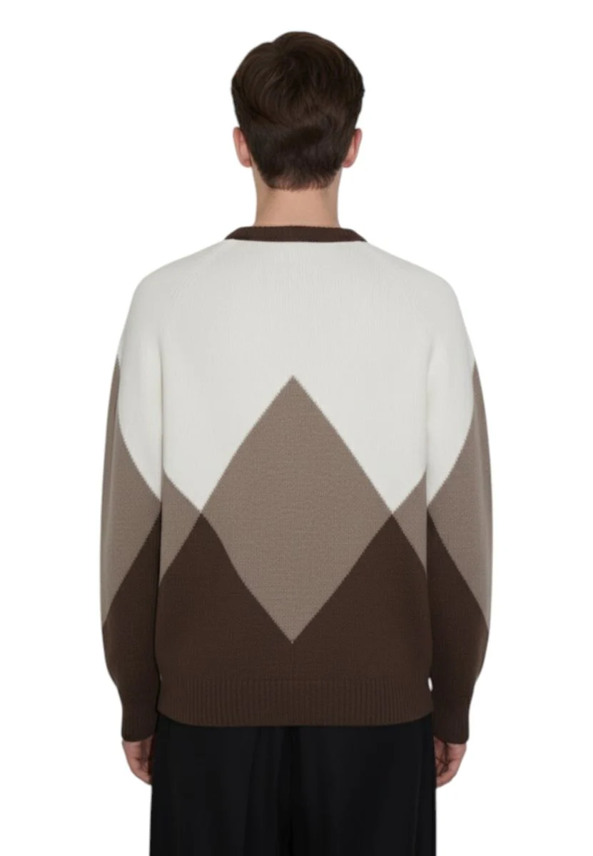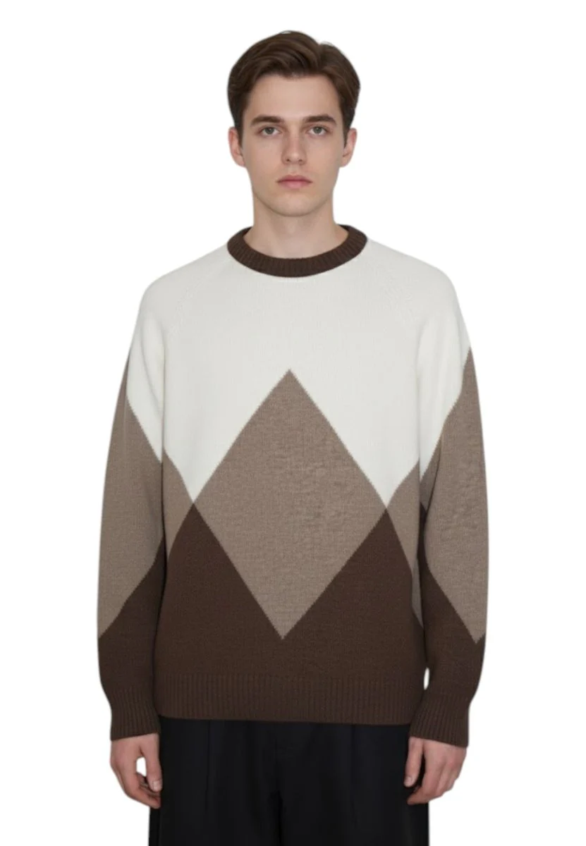 Realizzato con un mix di lana di alta qualità e poliammide, questo maglione offre una sensazione di morbidezza sulla pelle e un comfort duraturo. Il design a rombi in tonalità calde rende il capo versatile e ideale per ogni occasione, dalla giornata in ufficio al tempo libero.