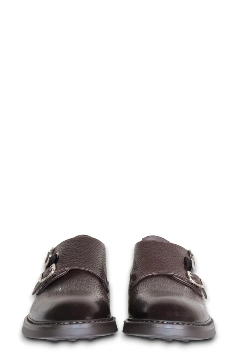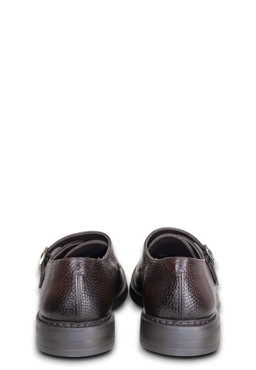 Le Stringate Rover in versione derby con doppia fibbia rappresentano una raffinata evoluzione della scarpa classica. Realizzate in pregiata pelle martellata nel profondo colore testa di moro, combinano carattere e sobrietà in un design che non passa inosservato. Le fibbie laterali donano un tocco contemporaneo, mentre la costruzione robusta e la finitura della pelle confermano l’attenzione ai dettagli tipica del made in spain.