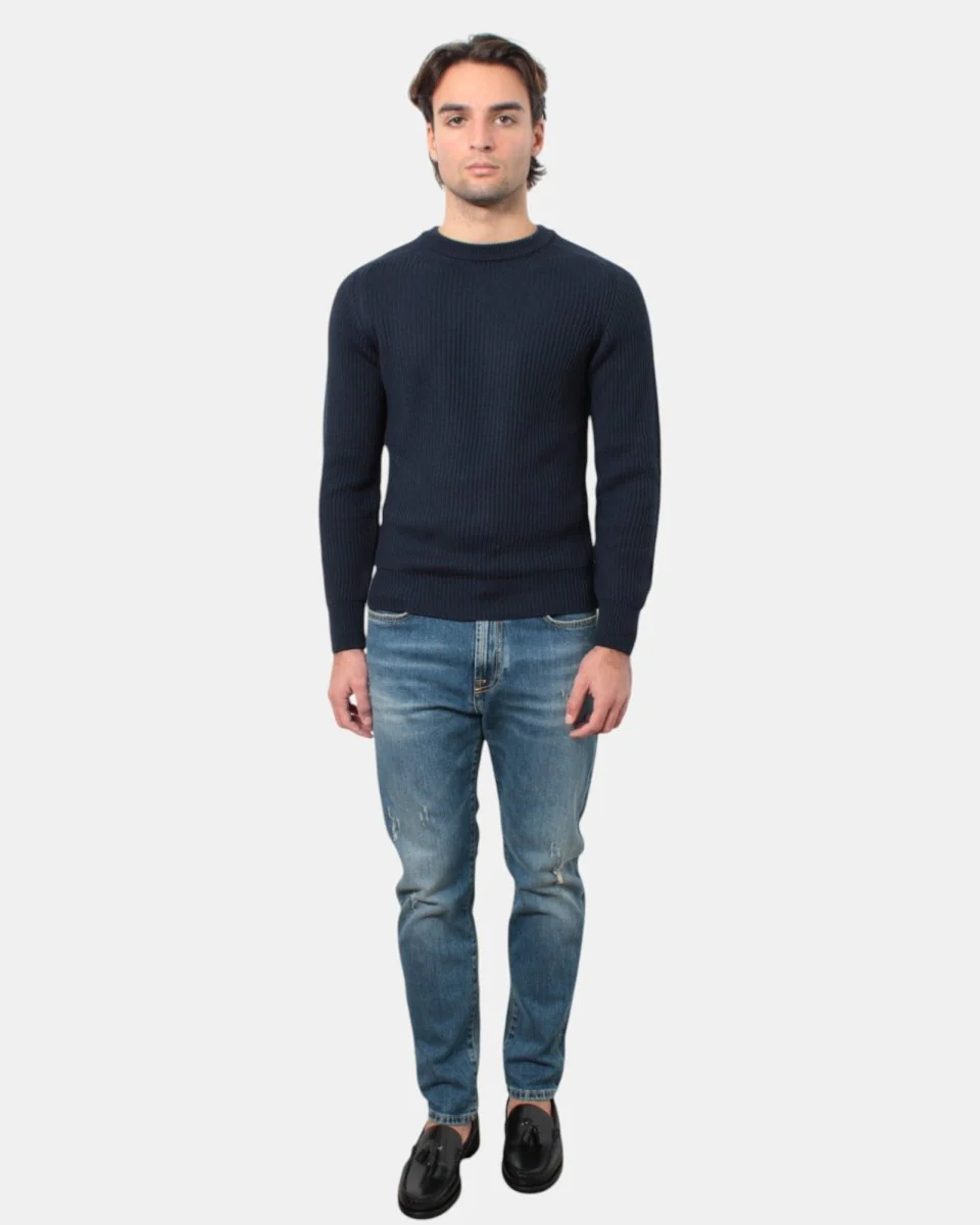 Il jeans di Roy Roger’s presenta due tasche frontali e due tasche a toppa sul retro, spacchi sia sul fronte sia sul retro dovuti al lavaggio, chiusura con zip e bottone , vestibilità regular. La composizione è 99% cotone e 1% elastan. Si consiglia il lavaggio a secco. Il modello è alto 1,79 m e indossa una 31