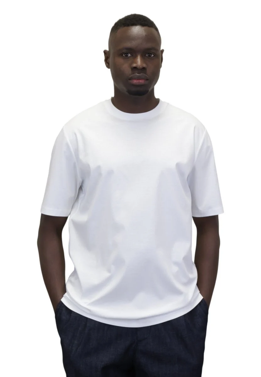 la T-shirt SHIKO 007 di People of Shibuya è un capo essenziale dallo stile contemporaneo. Realizzata in filo 80/1 ultra-light effetto filo di Scozia, questa maglietta girocollo offre una sensazione di freschezza e comfort sulla pelle, perfetta per ogni stagione.