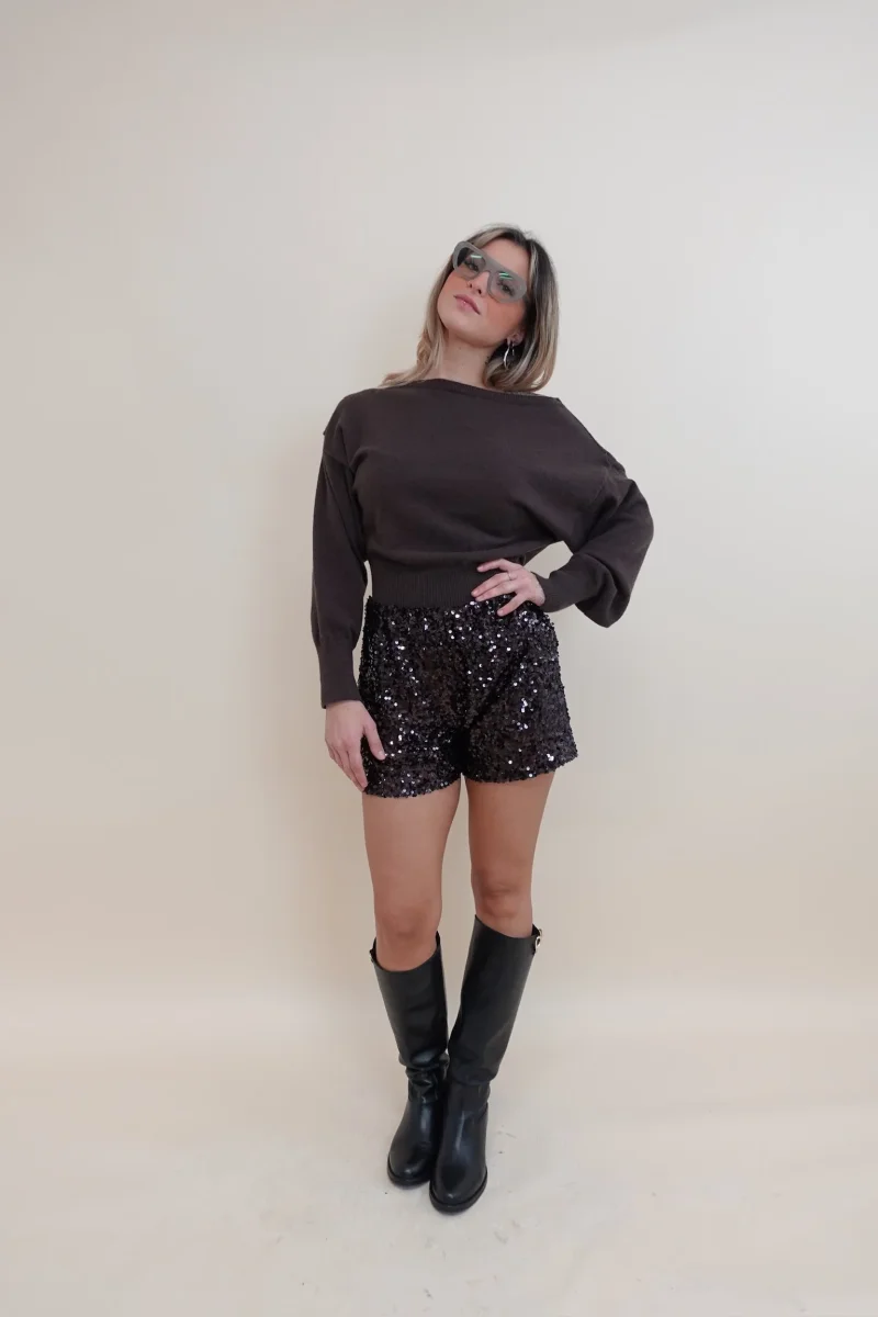 Shorts con paiettes, con elastico in vita