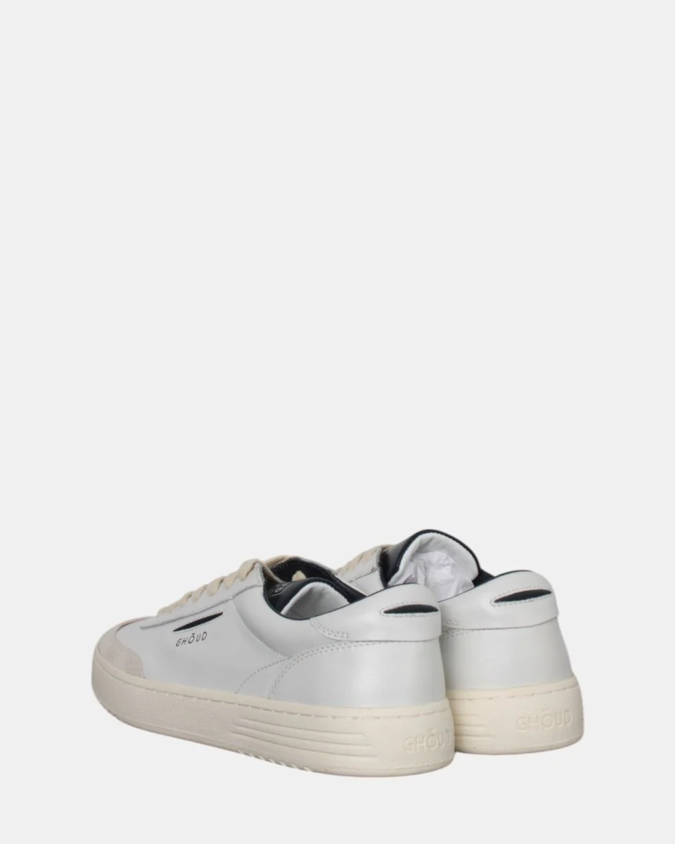 La sneakers di Ghoud in pelle, presenta punta in camoscio traforata, logo brand sula linguetta e sulla parte esterna, para leggermente alta. La calzata è regolare
