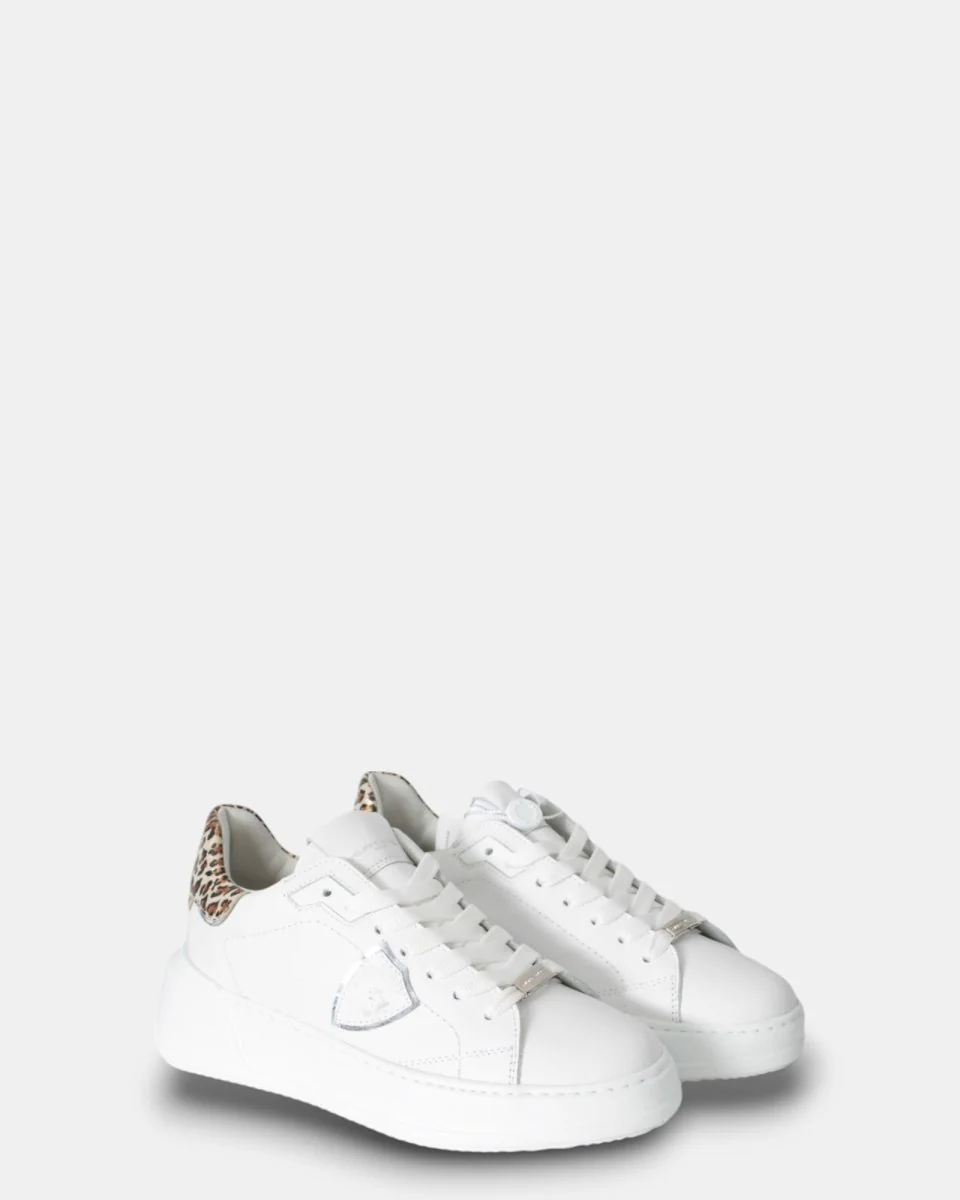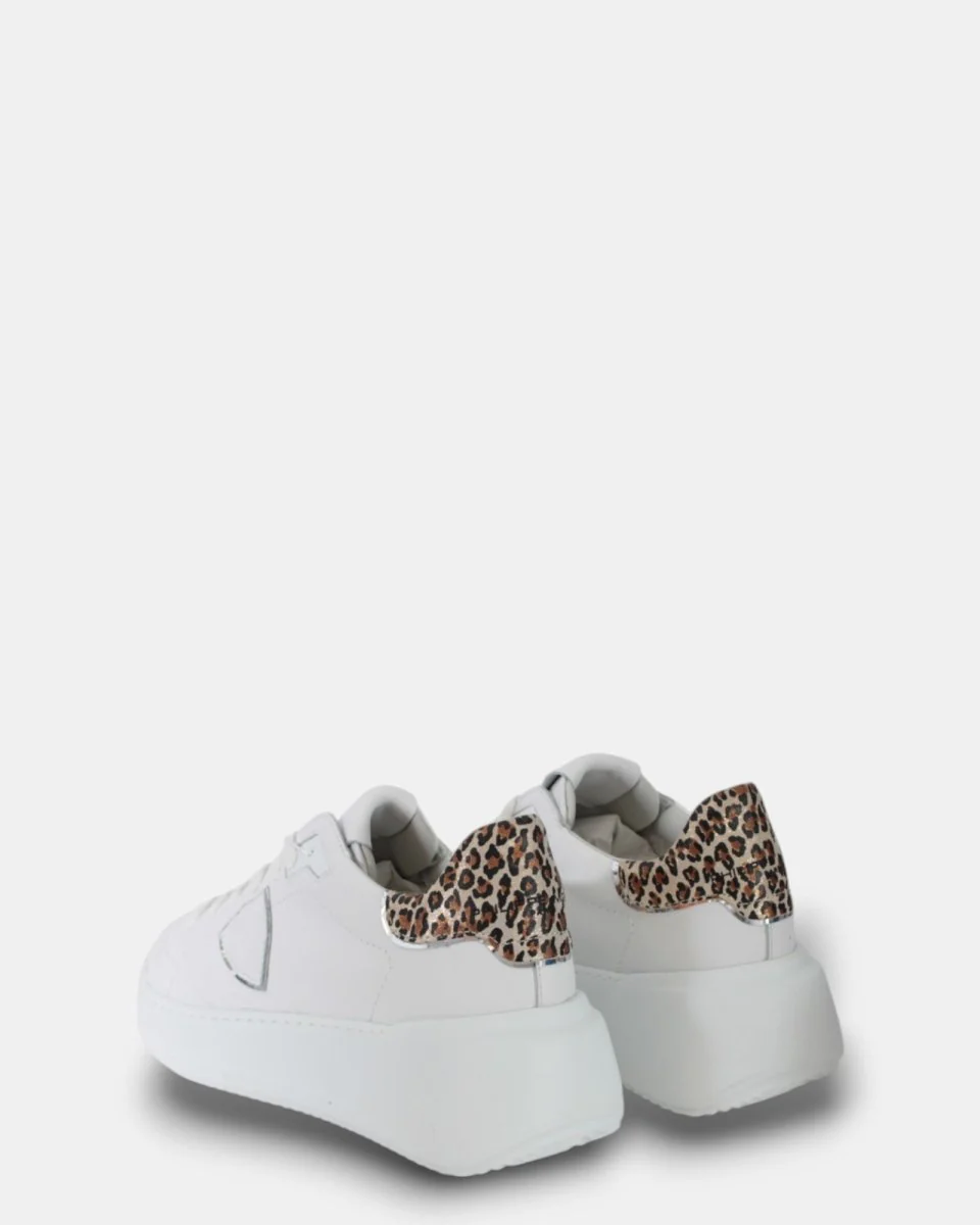 modello: sneaker philippe model con topponcino logato in pelle e stampa animalier, linguetta logata e chiusura con lacci.