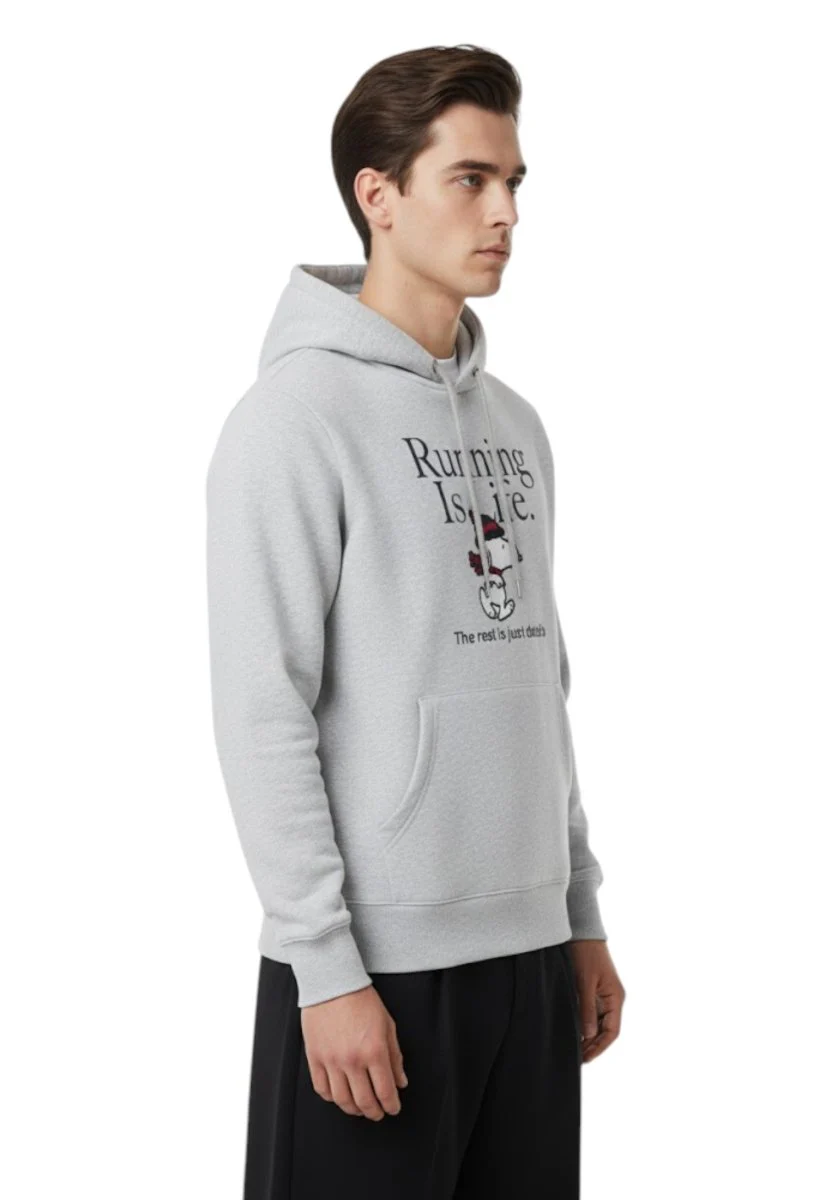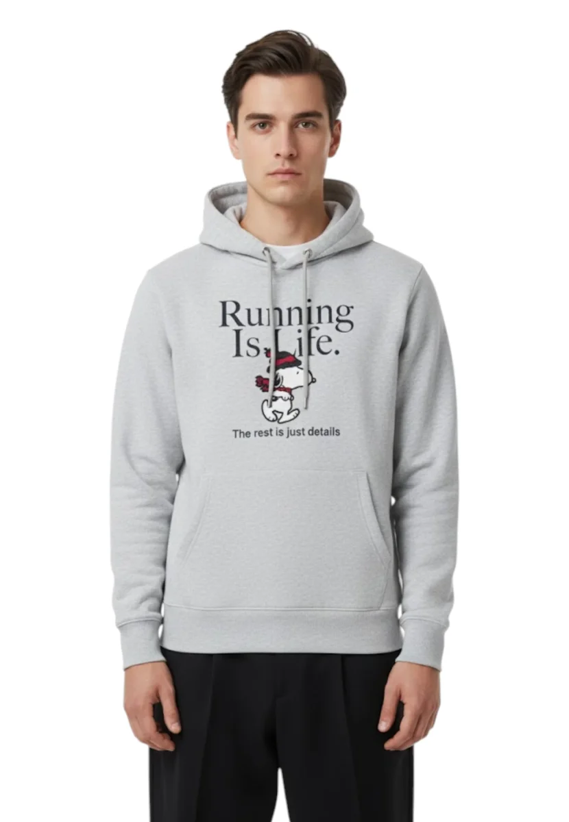 Realizzata in puro cotone, questa felpa non solo offre una piacevole sensazione sulla pelle, ma è anche facile da abbinare a qualsiasi tuo outfit quotidiano. La stampa Running Is Life. The rest is just details aggiunge un tocco di personalità al tuo look, perfetto per chi vive la corsa come uno stile di vita.