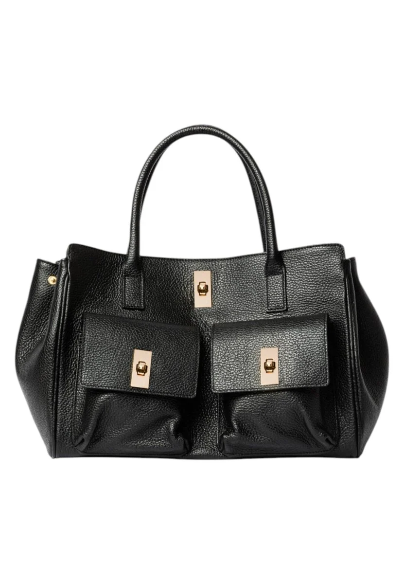 Eleganza funzionale e design contemporaneo si incontrano nella borsa da donna Avenue 67, realizzata in pregiata pelle dollaro nera, morbida al tatto e resistente nel tempo. Pensata per accompagnarti con stile nella quotidianità, questa borsa si distingue per la sua struttura compatta e versatile, con doppio manico e tracolla rimovibile e regolabile fino a 130 cm, ideale per essere indossata a mano o a spalla.