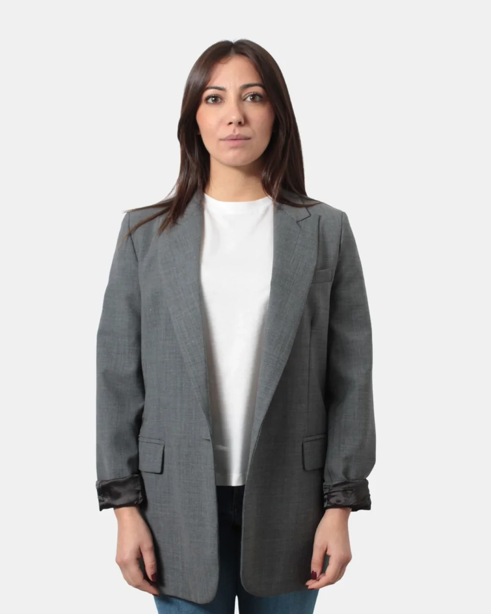 Il cappotto monopetto di Solotre a un bottone presenta rever a lancia, due tasche a filo con pattina, tre bottoni sulle maniche e uno spacco sul retro. Dall’effetto morbido dovuto alla sua composizione in 53% poliestere, 43% lana vergine e 4% viscosa . Si consiglia il lavaggio del capo a secco. La modella è alta 1,67 m e indossa una 46
