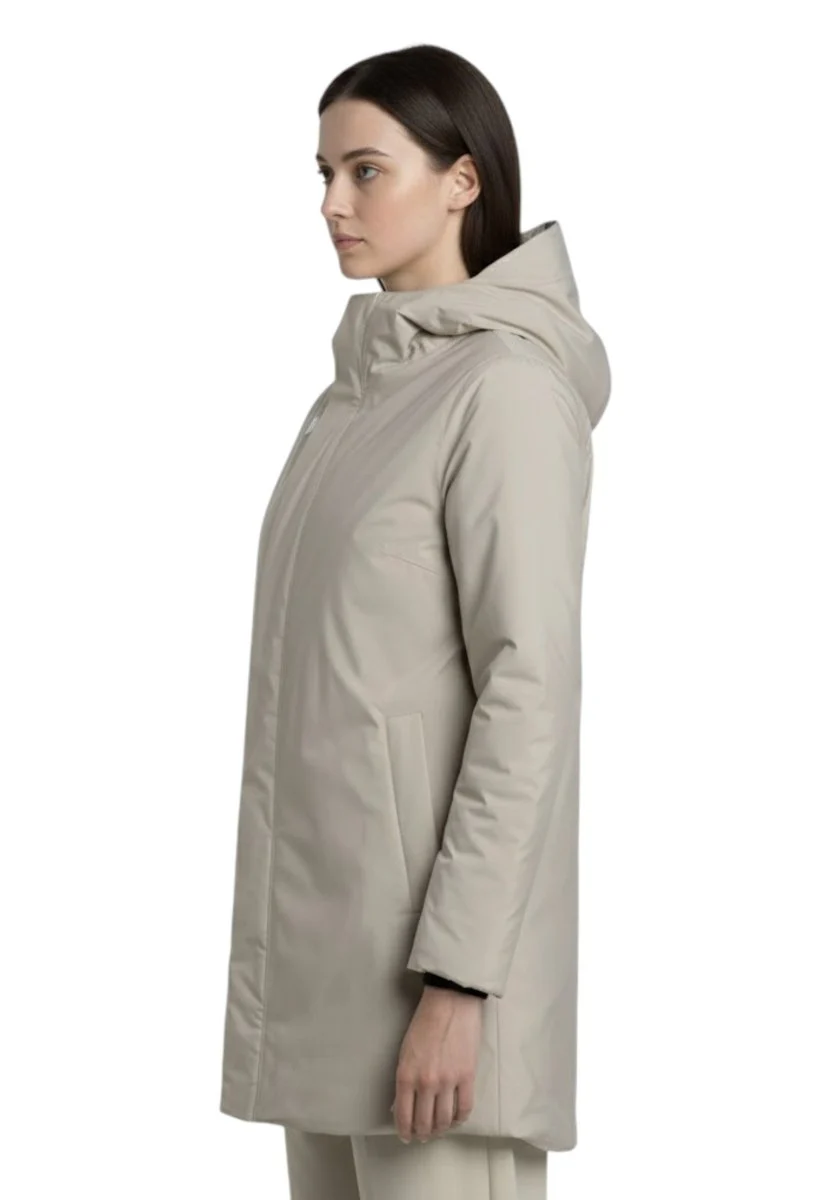 Realizzata in tessuto impermeabile e antivento, Sophie è foderata con un tessuto soffice rinnovato per offrire una sensazione ancora più piacevole sulla pelle. L’imbottitura leggera in ovatta di poliestere riciclato garantisce un grado di calore medio, ideale per l’autunno e la primavera.