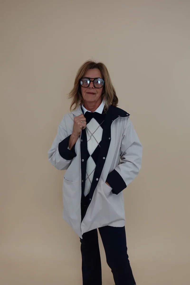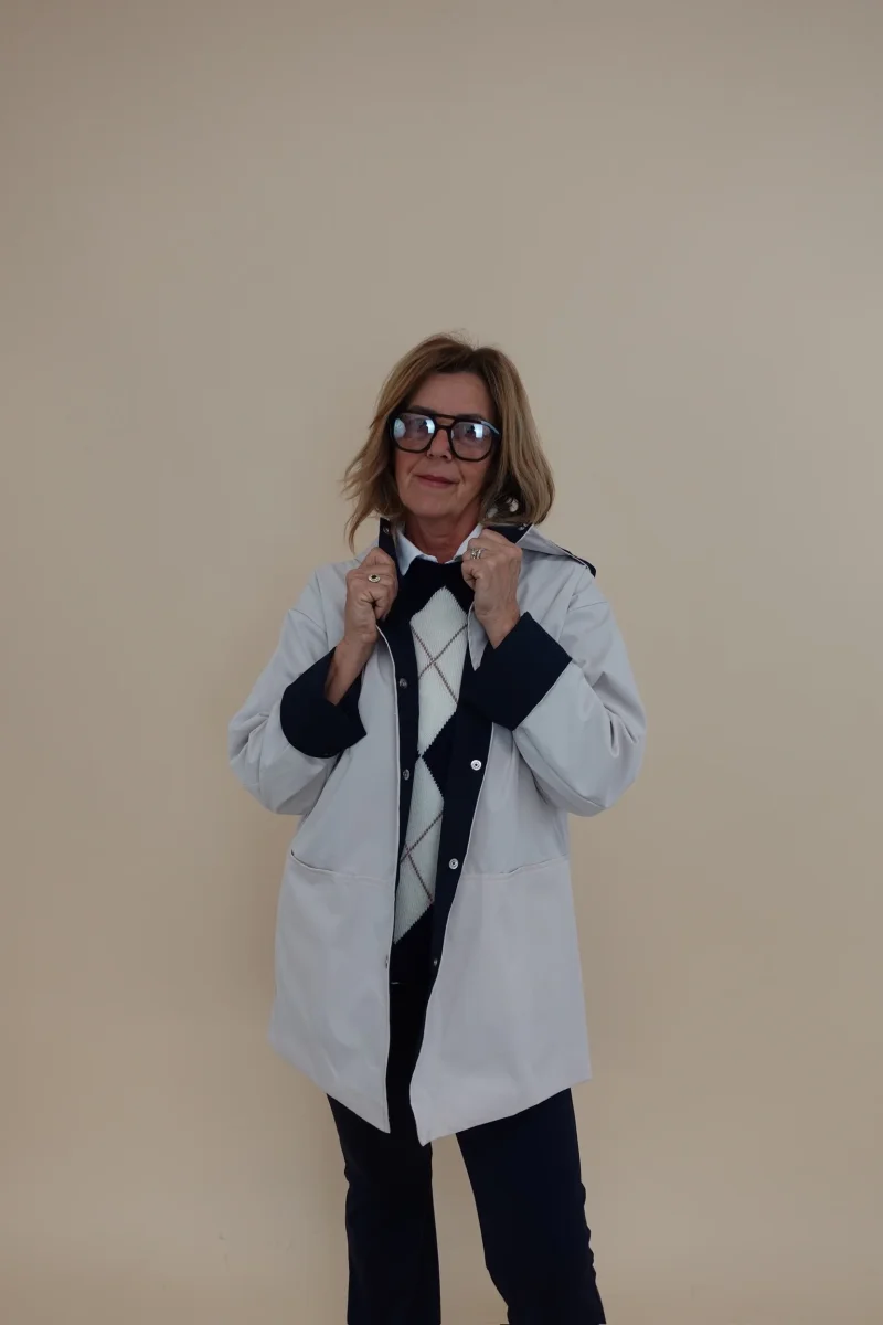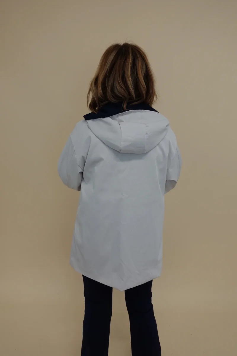 Spolverino con cappuccio, tasche e chiusura con bottoni, interno Blu