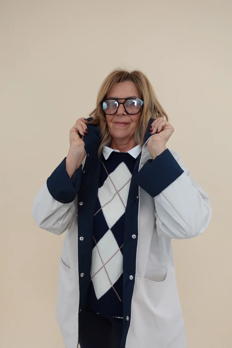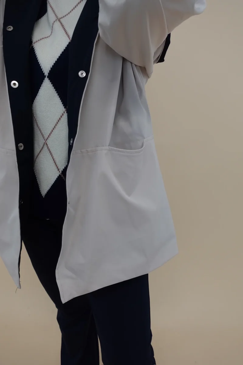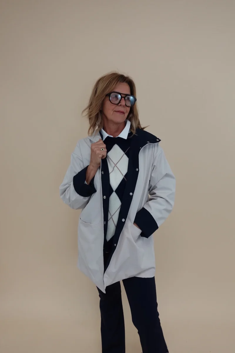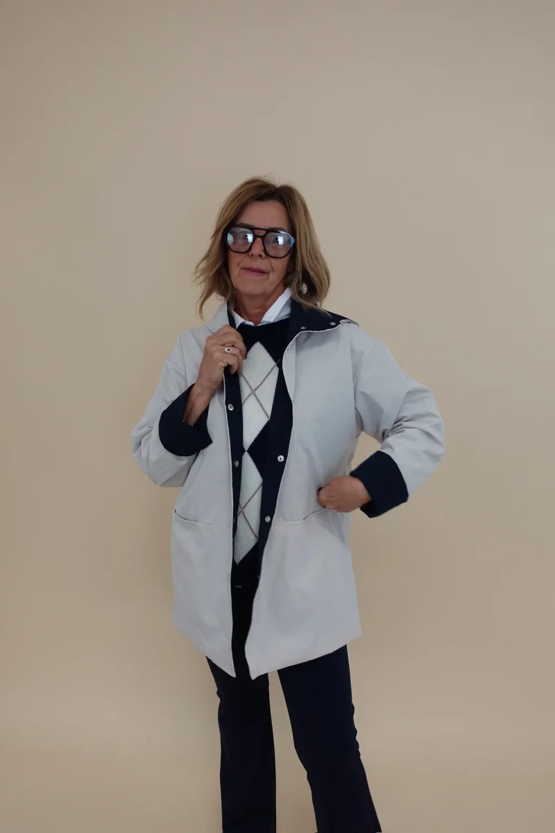 Spolverino con cappuccio, tasche e chiusura con bottoni, interno Blu