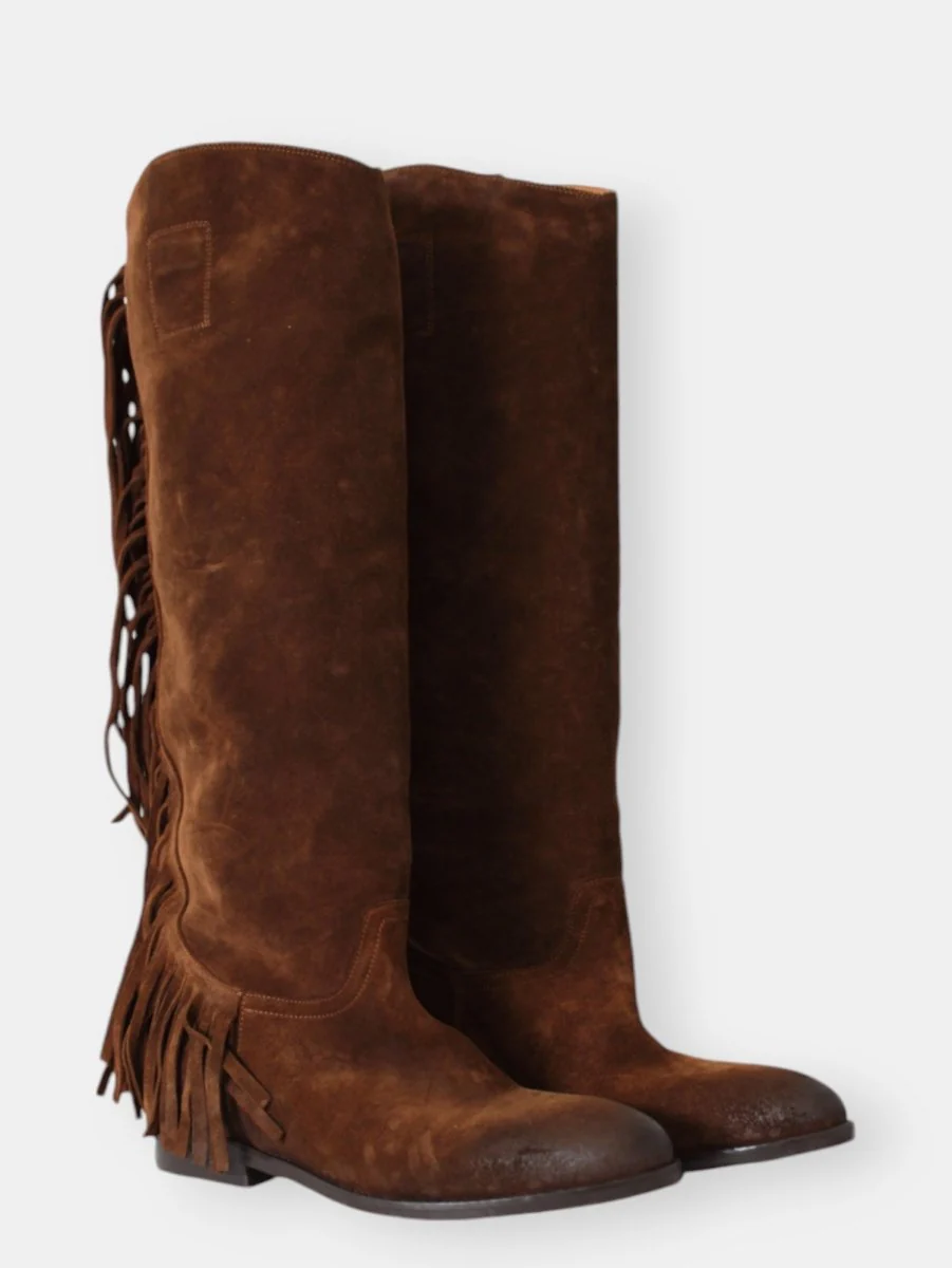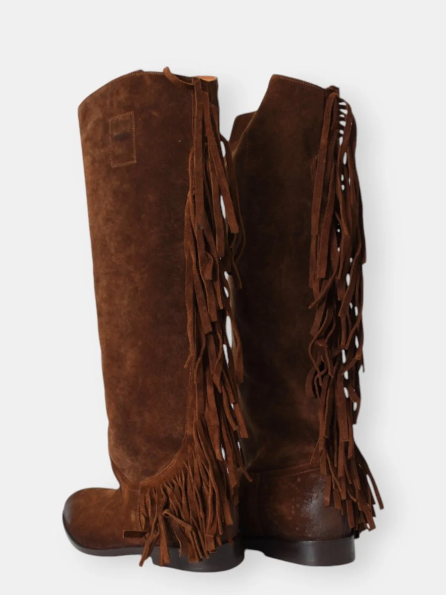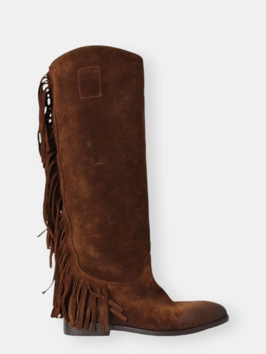 Stivale cavallerizza con frange posteriori, punta leggermente sfilata.