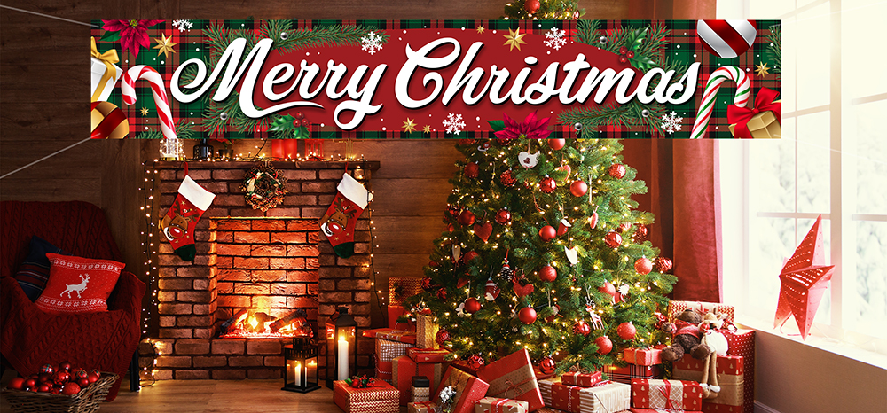 • Striscione natalizio con scritta Buon Natale, realizzato in poliestere.