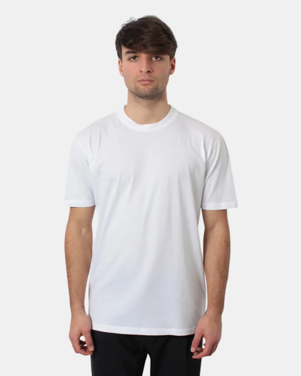 La t-shirt a mani corte di Bellwood presenta collo a costine, fantasia monocolore, dalla mano fresca dovuta alla sua composizione in 100% cotone. Si consiglia lavaggio a mano. Il modello è alto 1,78 m e indossa una 52