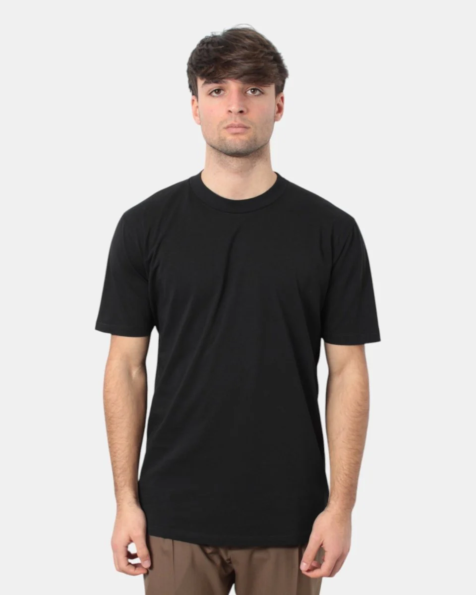 La t-shirt a mani corte di Bellwood presenta collo a costine, fantasia monocolore, dalla mano fresca dovuta alla sua composizione in 100% cotone. Si consiglia lavaggio a mano. Il modello è alto 1,78 m e indossa una 52