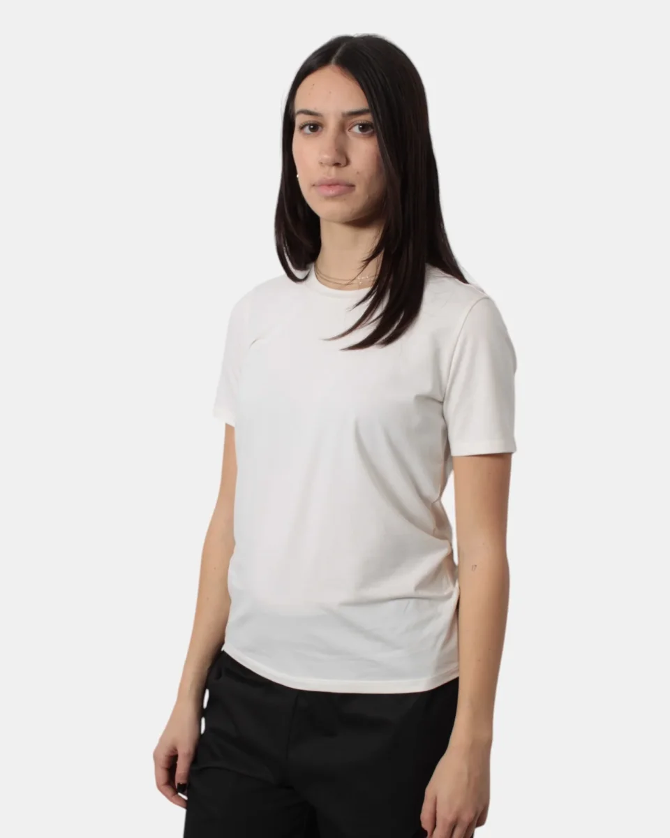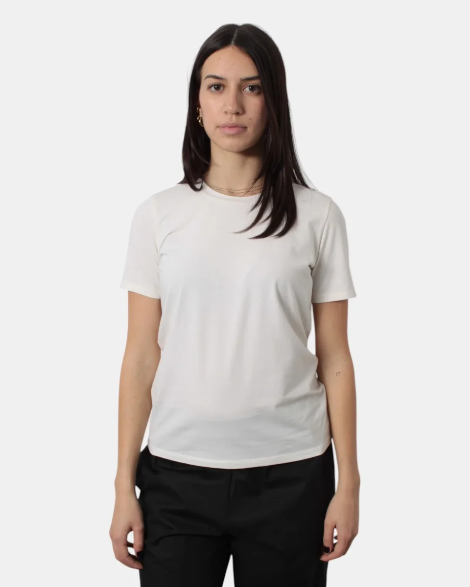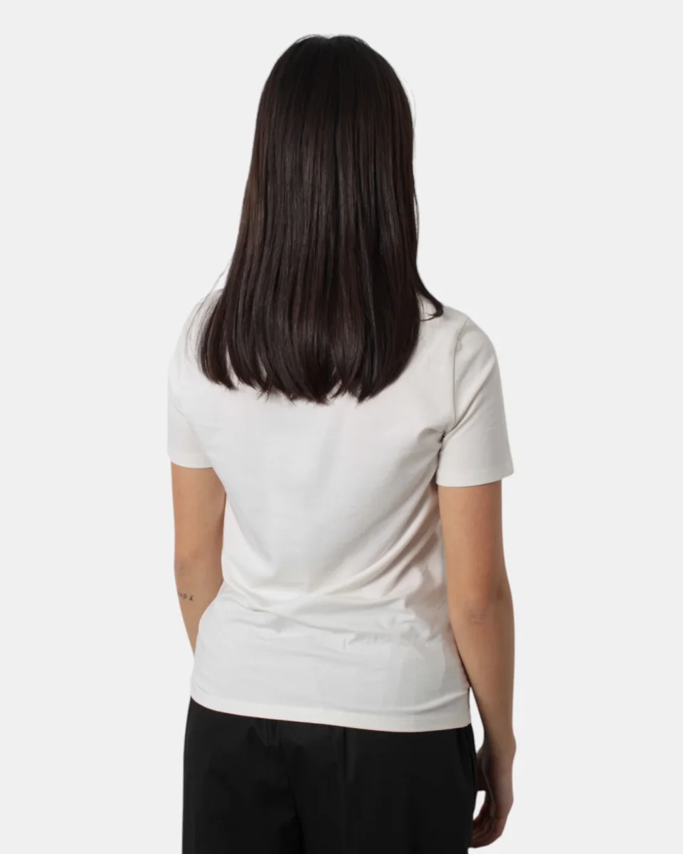La maglia di Max Mara presenta fantasia monocolore, dalla mano fresca e leggera dovuta alla sua composizione in 95% cotone e 5% elastan. Si consiglia lavaggio a mano. La modella è alta 1,68 m e indossa una S