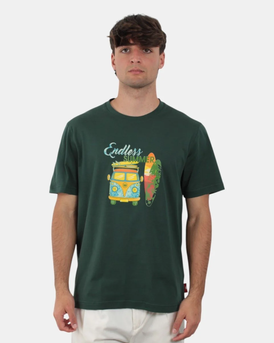 La t-shirt di Red presenta fantasia con stampa frontale , dalla mano fresca dovuta alla sua composizione in 100% cotone. Si consiglia lavaggio a massimo 30 gradi. Il modello è alto 1,78 e indossa una M