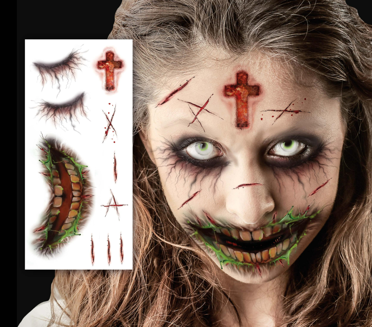 Questo tatuaggio lavabile raffigurante il volto da zomi spaventoso è la soluzione perfetta per chi vuole diventare un zombi per Halloween. Che tu stia pianificando di partecipare a una festa di Halloween, a una parata o semplicemente di sorprendere i tuoi amici, questo tatuaggio aggiungerà drammaticità, mistero e un aspetto spaventoso al tuo outfit.