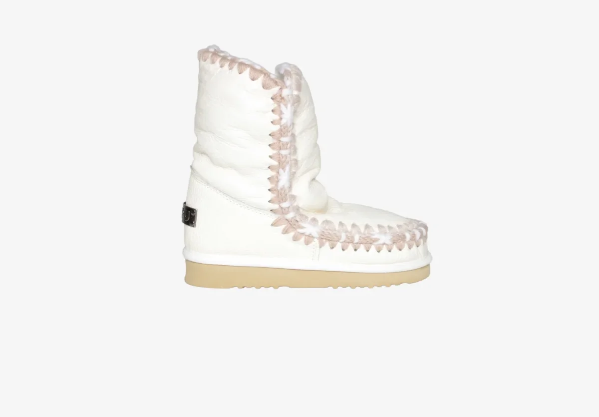 Il tronchetto di Mou è realizzato in pregiata pelle e cucitura all’uncinetto iconiche fatte a mano. Il modello presenta logo applicato sul retro e classica gomma morbida sul fondo.