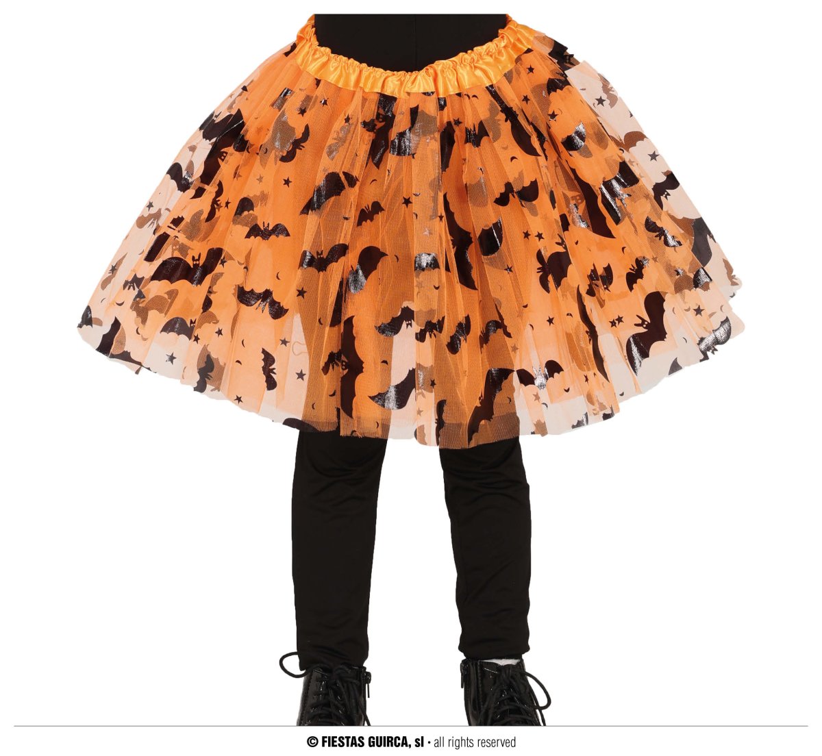Tutù arancione stampa pipistrelli 30 cm halloween bambina