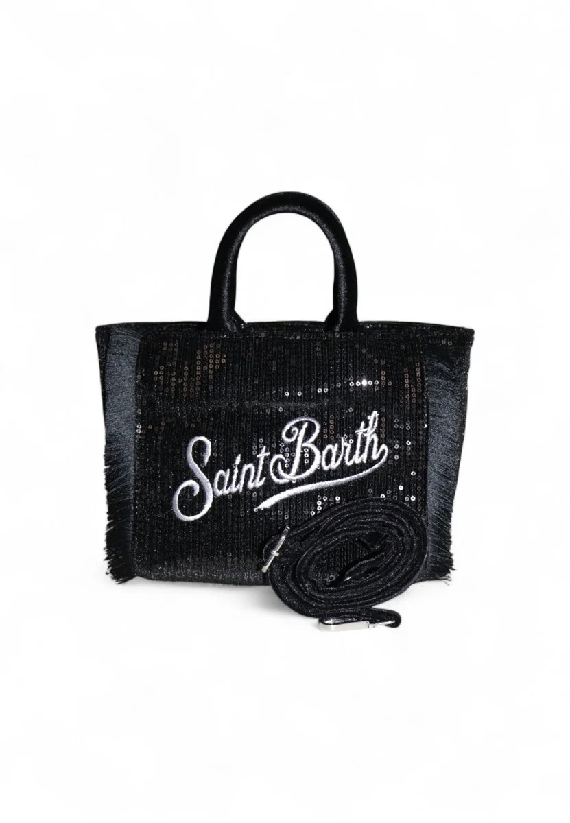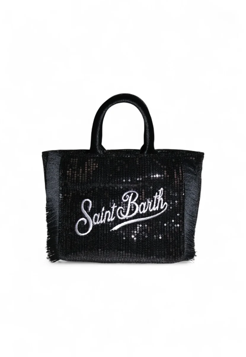 la Vanity Mini Velvet Paillettes 00 EMB di MC2 Saint Barth è la borsa perfetta per aggiungere un tocco glamour al tuo look. Realizzata in velluto nero con paillettes all-over, unisce texture ricercata e luce scintillante in un formato compatto ma capiente.