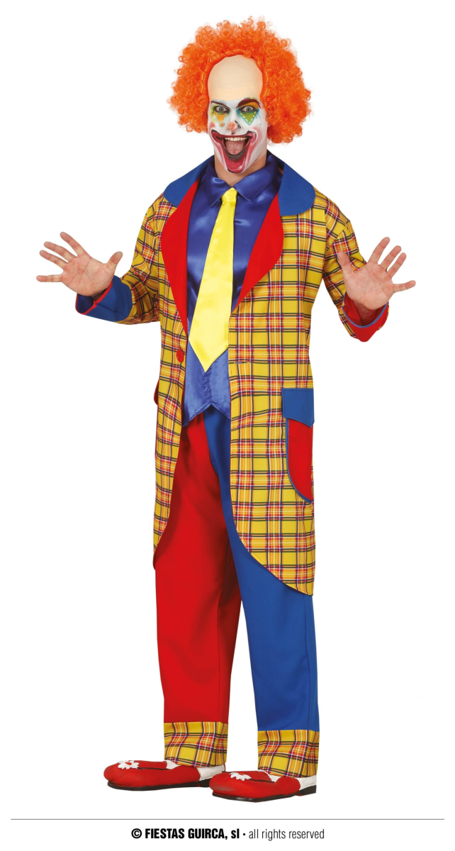 Divertente costume da clown colorato. Un modello elegante ma allo stesso tempo informale per le vostre caratterizzazioni circensi.