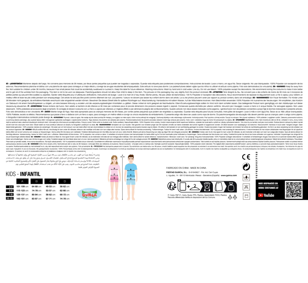 10 – 12 anni H 142 – 148 CM, 3 – 4 anni H 95 – 105, 5 – 6 anni H 110 – 115 CM, 7 – 9 anni H 125 – 135 CM