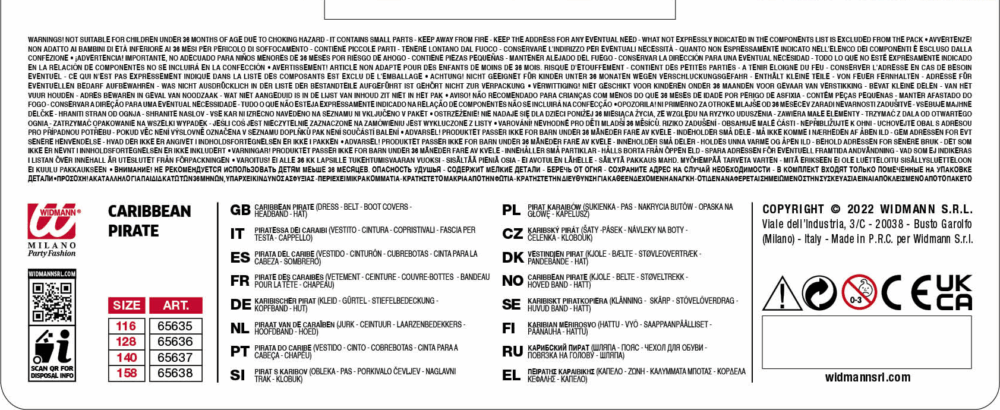 WIDMANN COSTUME PIRATESSA DEI CARAIBI. La confezione comprende: vestito, cintura, copristivali, fascia per testa, cappello. Sono esclusi gli accessori non menzionati.Abito,Travestimento,Carnevale,Comico,Halloween,cosplay