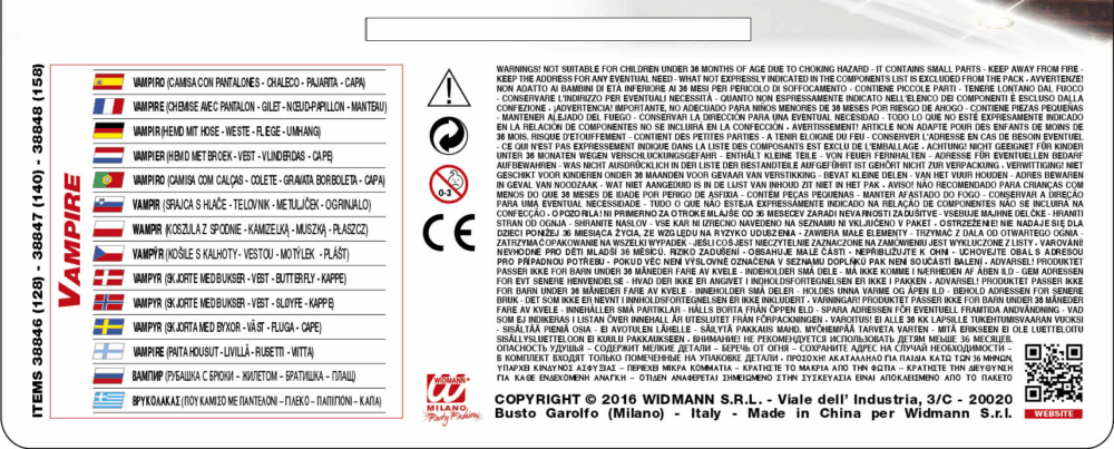La confezione comprende:camicia con pantaloni, gilet, farfallino, mantello. Sono esclusi gli accessori non menzionati.