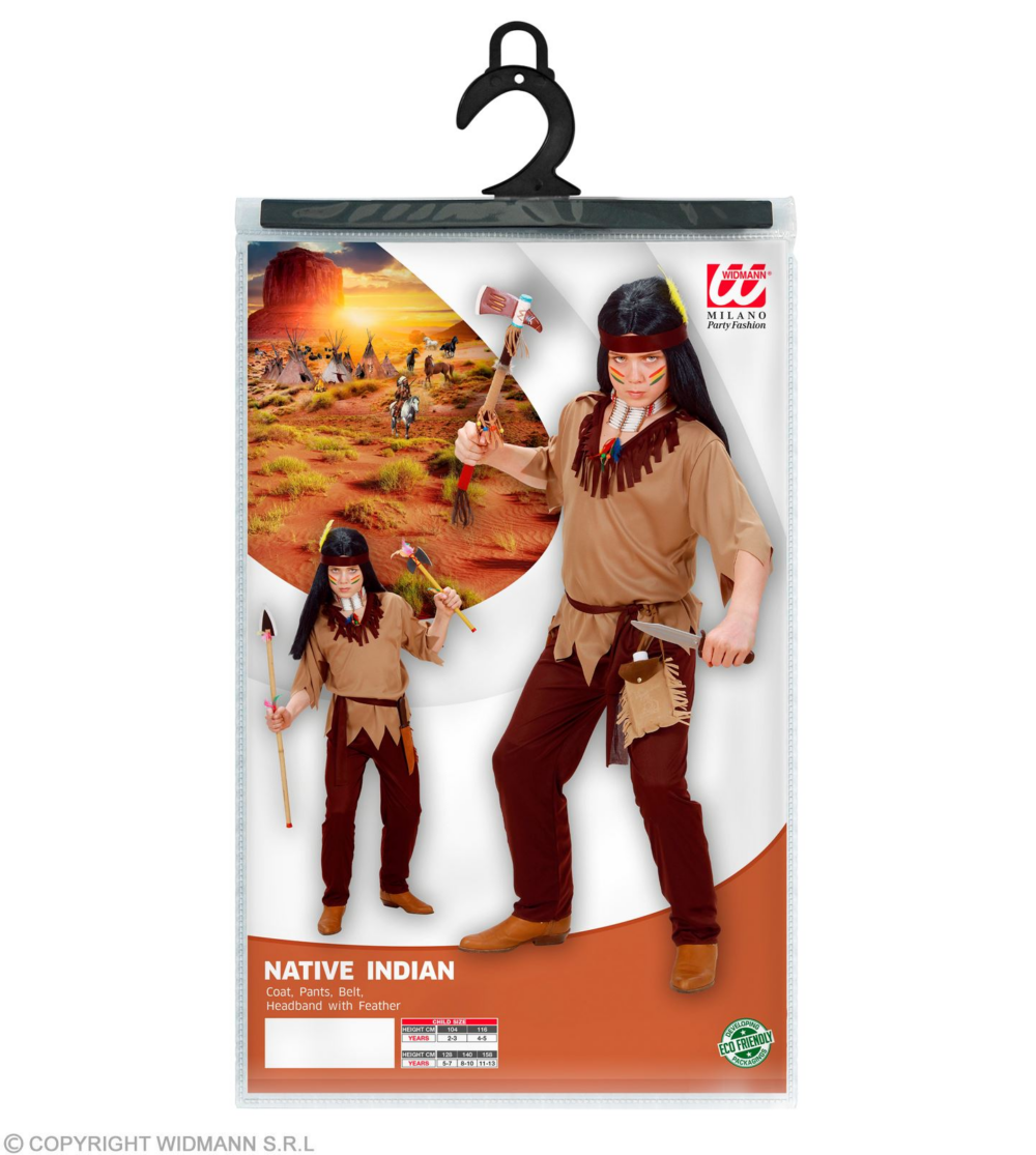 WIDMANN COSTUME INDIANO. La confezione comprende:casacca pantaloni cintura fascia per testa. Sono esclusi gli accessori non menzionati.Abito,Travestimento,Carnevale,Comico,Halloween,cosplay