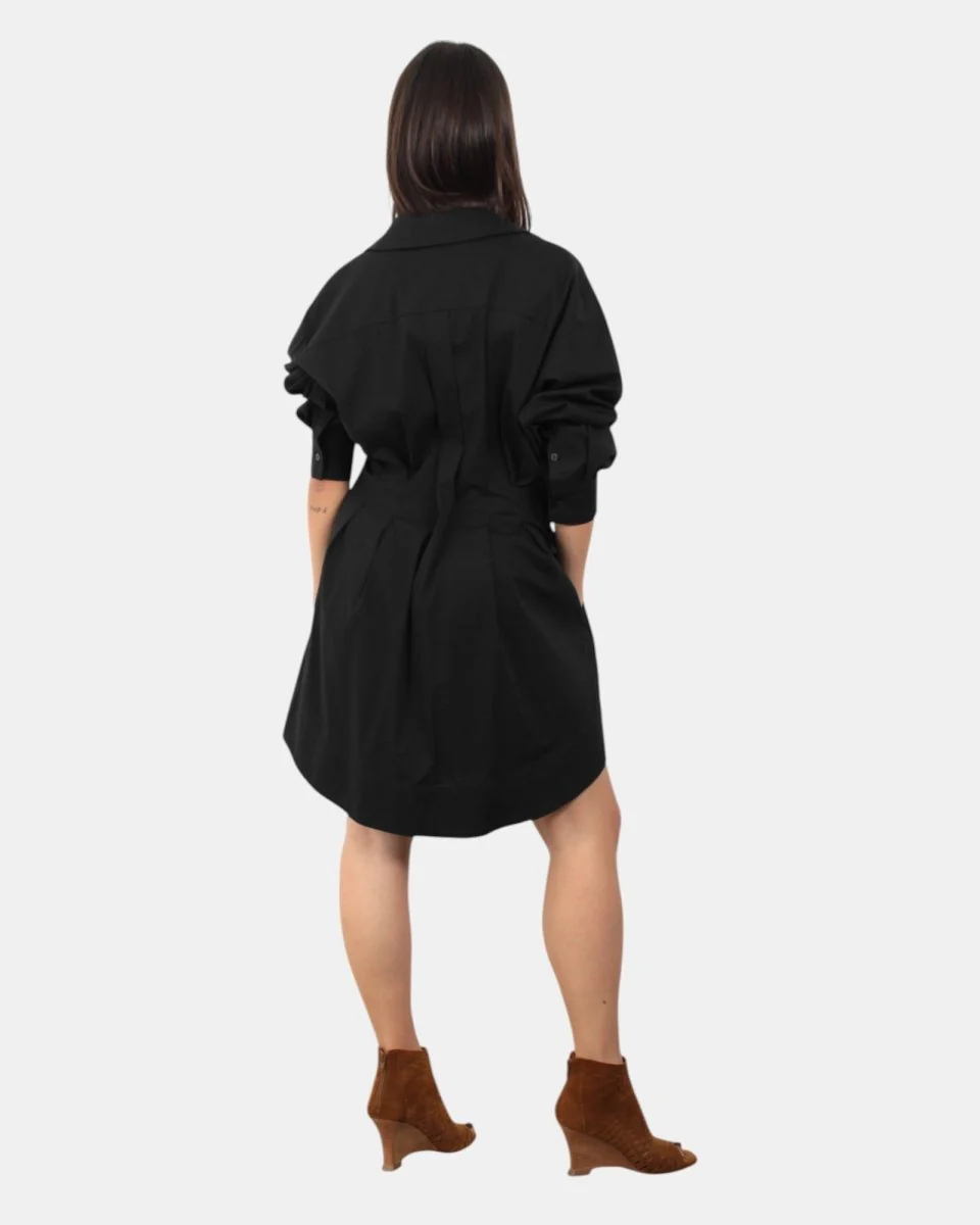 Vestito di Jijil presenta una linea corta e femminile, con chiusura frontale a bottoni, scollo a V con colletto e maniche lunghe. Un capo versatile, perfetto per look casual o più curati.