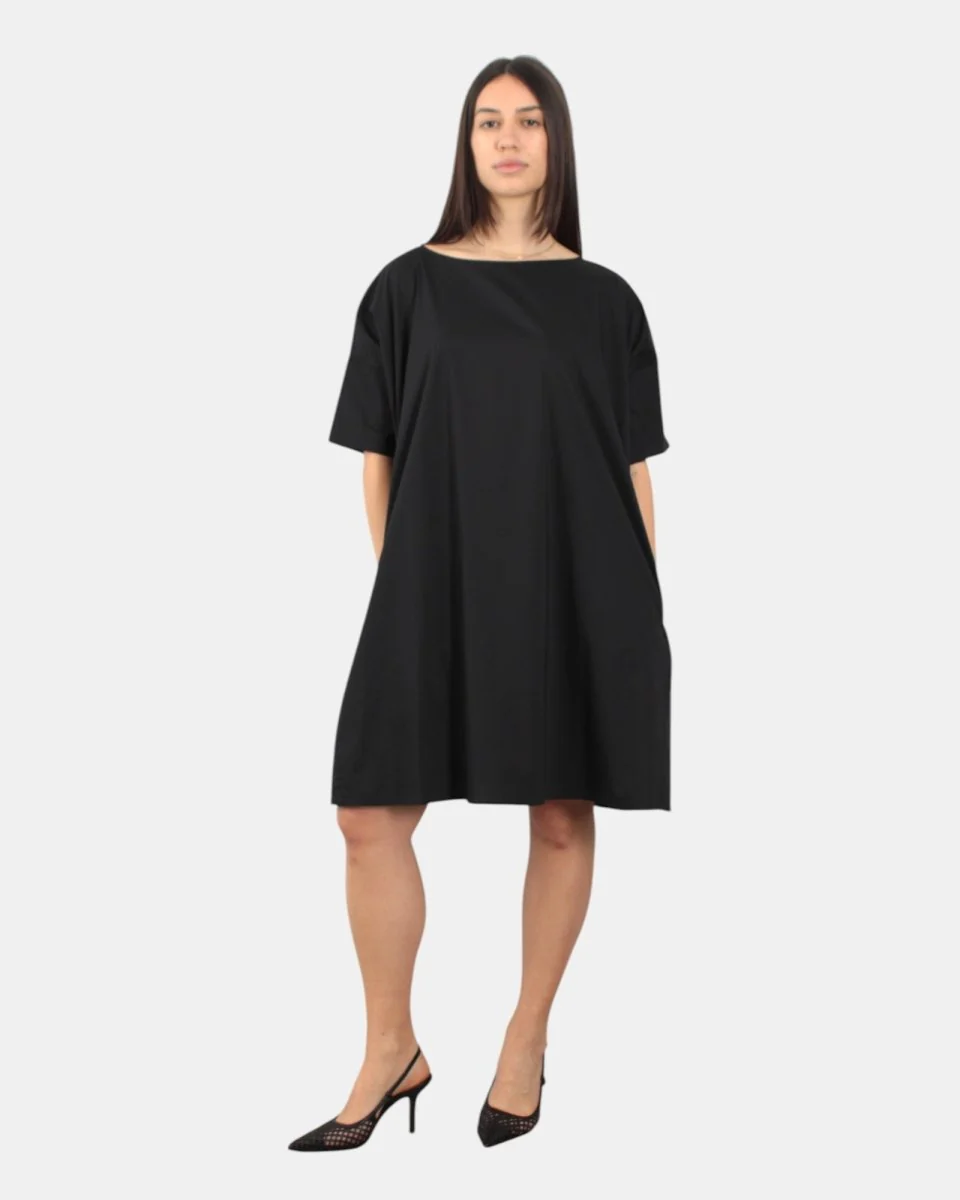 L’abito di Liviana Conti presenta fantasia monocolore, maniche corte, dalla mano fresca dovuta alla sua composizione in 68% cotone 28% poliammide 4% elastan. Si consiglia lavaggio a massimo 30 gradi. La modella è alta 1,68 m e indossa una 40