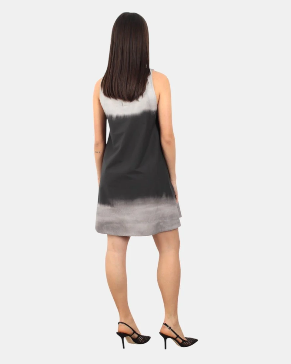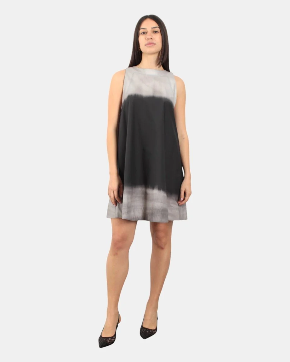 Il vestito di Liviana Conti presenta fantasia sfumata , chiusura sul retro a due bottoni, dalla mano fresca dovuta alla sua composizione in 97% cotone 3% elastan. Si consiglia lavaggio a massimo 30 gradi. La modella è alta 1,68 m e indossa una 42