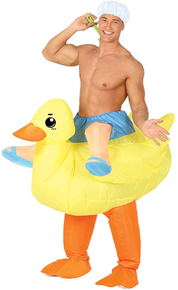 COSTUME paperella da Bagno Gonfiabile. La confezione comprende: pantaloni con la forama dell anatra e le gambe di una persona che va oltre il cap. Include il motore che gira la ventola per manteneerlo gonfio. Sono esclusi gli accessori non menzionati.