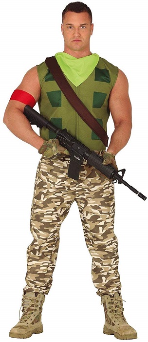 COSTUME Personaggio Skin Soldato Videogames . La confezione comprende: gilet con chiusura lampo anteriore, foulard e cintura, pantaloni con elastico in vita e fascia per il braccio . Sono esclusi gli accessori non menzionati.