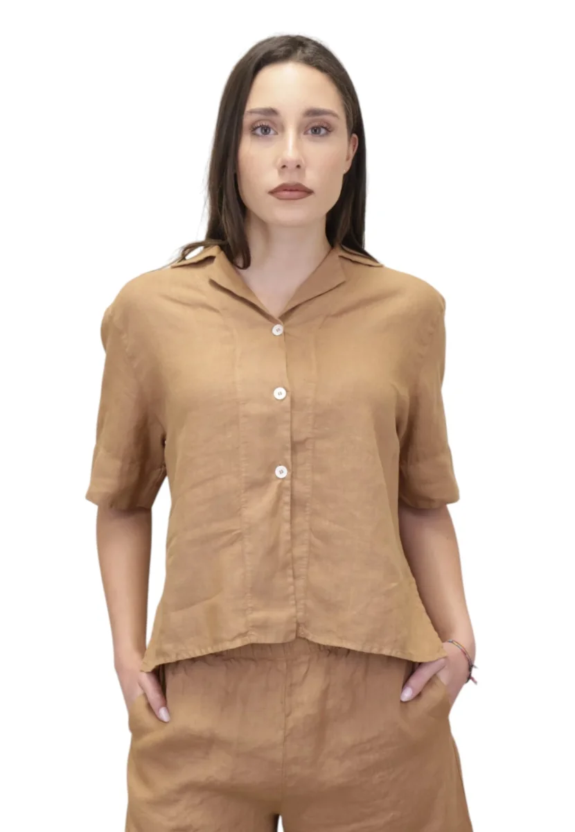 La camicia Zelda firmata Academia è il capo ideale per la donna che cerca eleganza e freschezza in ogni occasione. Realizzata in 100% lino, questa camicia a manica corta con chiusura a bottone garantisce leggerezza, traspirabilità e comfort naturale, rendendola perfetta per la stagione primavera estate. Il lino, fibra pregiata e naturale, assicura una vestibilità fluida e raffinata, ideale sia per look casual chic che per outfit più ricercati.